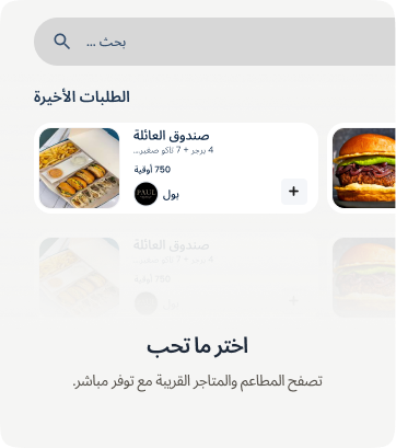 اطلب من مطاعمك ومتاجرك المفضلة. وجبات طازجة، مستلزمات يومية، وتوصيل في